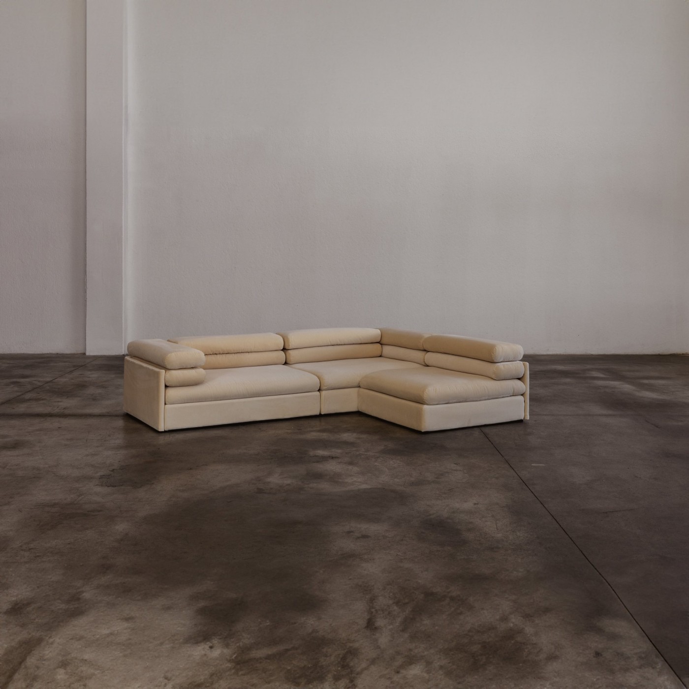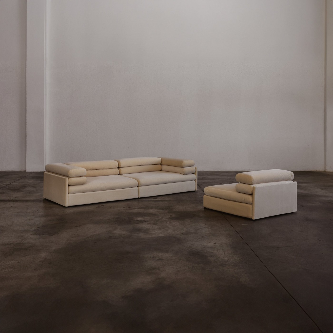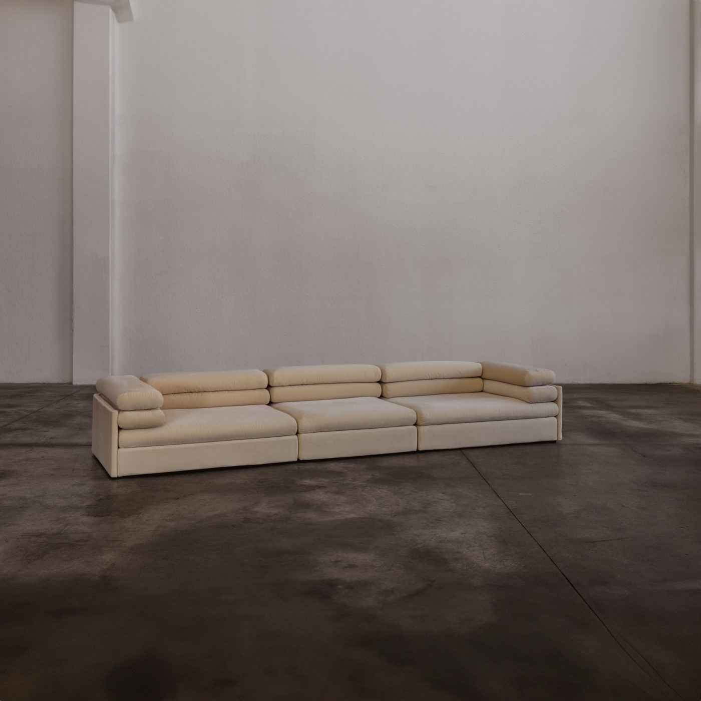 Afra & Tobia Scarpa “Elogio” modular sofa for B&B Italia, ivory velvet, 1974, set of three