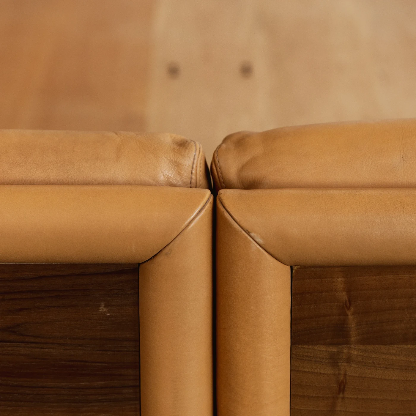 Afra & Tobia Scarpa “Morna” bed for Molteni, wood and cognac leather, Italy, 1972