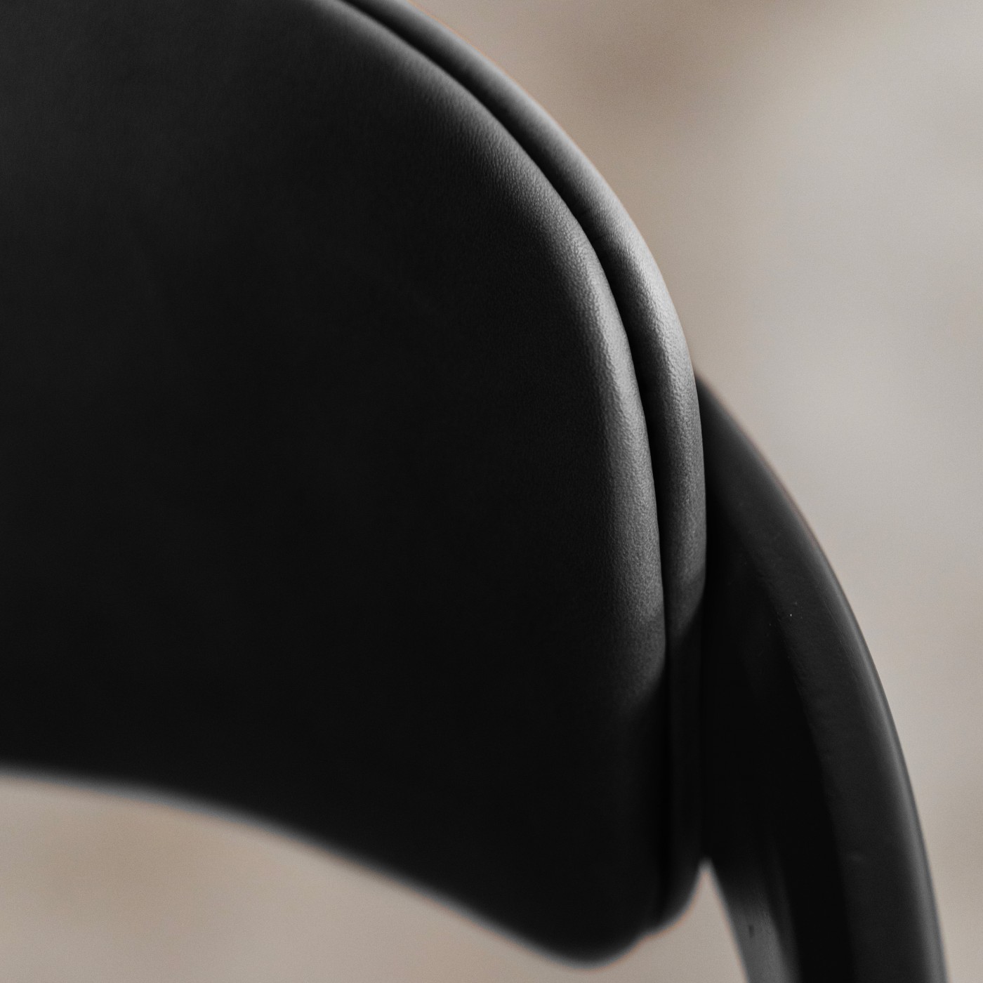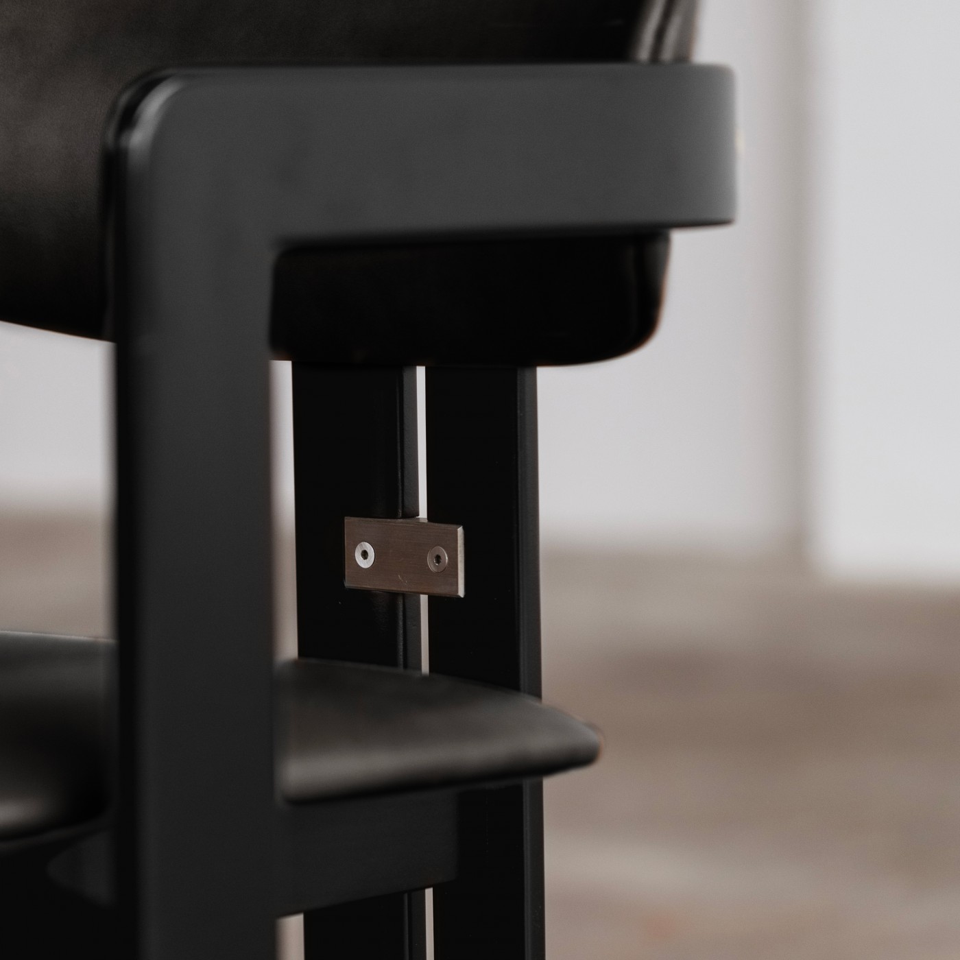 In the realm of Italian craftsmanship, the Pamplona chairs by Augusto Savini for Pozzi stand as a symbol of architectural elegance. Crafted in 1965, the design of this classy chair echoes the magnetism of mid-century aesthetics. Reminiscent of the iconic “Pigreco” chair by Afra & Tobia Scarpa, yet uniquely distinctive in its own right, these chairs captivate with their originality and meticulous craftsmanship. Constructed from ebonized ash-wood and adorned with supple leather in a rich shade of light brown. The aluminum elements in the back represent a distinctive detail, enhancing the personality of these chairs. With clean lines and bold contrasts, they illustrate the harmonious blend of wood and leather, creating a statement piece that transcends mere furniture.