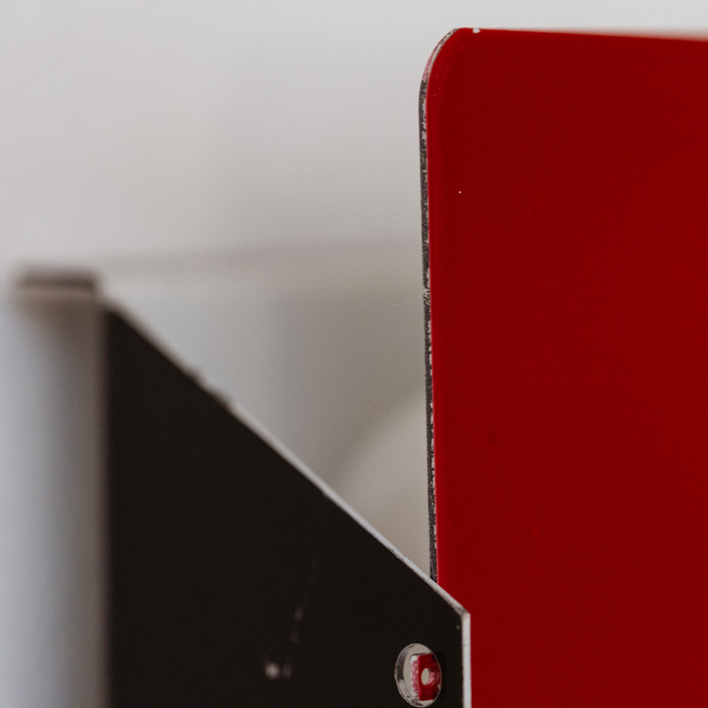 Charlotte Perriand designed the CP1 wall sconce in 1958, merging functional lighting with modular adaptability. The CP1 was conceived as a modular, space-saving lighting solution, reflecting her belief in practicality and adaptability. It mounts vertically or horizontally, integrating seamlessly with recessed automation systems or surface installations. Arranged in multiple configurations, it creates dynamic light compositions. A metal shade with a red finish sits on an elegant wall plate, with a button switch ensuring ease of use. is a prime example of her functionalist approach to design. Known for her philosophy of “useful forms” (formes utiles), Perriand aimed to create objects that seamlessly integrated into everyday life.