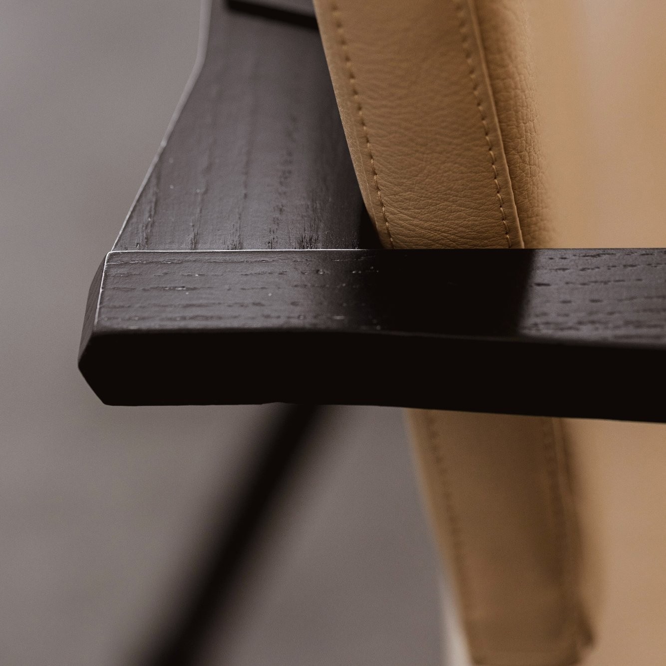 Originally designed in 1939 and refined through multiple iterations, the 832 “Luisa” armchair reached its final form in 1953. This emblematic piece of Italian rationalism—named after Albini’s wife—is a masterclass in structural honesty and material reduction. The chair’s striking geometry balances voids and masses with studied precision: the black lacquered wood frame appears almost like a drawing in space, supporting padded leather cushions that seem to float. Each element is reduced to its essence, with the joints and angles becoming expressive components of the whole. Awarded the Compasso d’Oro in 1955, the “Luisa” exemplifies Albini’s ability to merge artisanal tradition with architectural thought. His work—anchored in discipline and restraint—helped define the vocabulary of Italian modernism alongside figures like Ignazio Gardella and Carlo Scarpa.