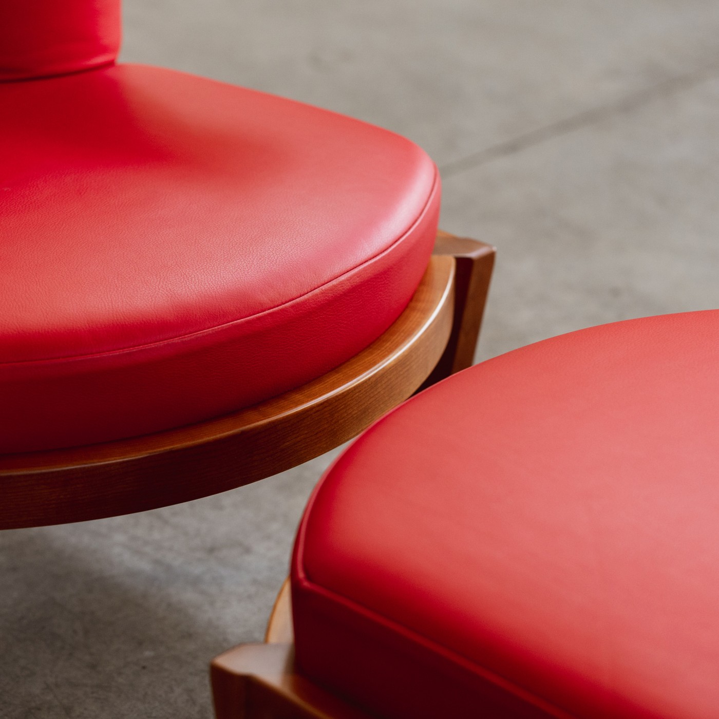 Frank Lloyd Wright “Friedman” Lounge Set for Cassina, cherry wood and red leather, Italy, 1956