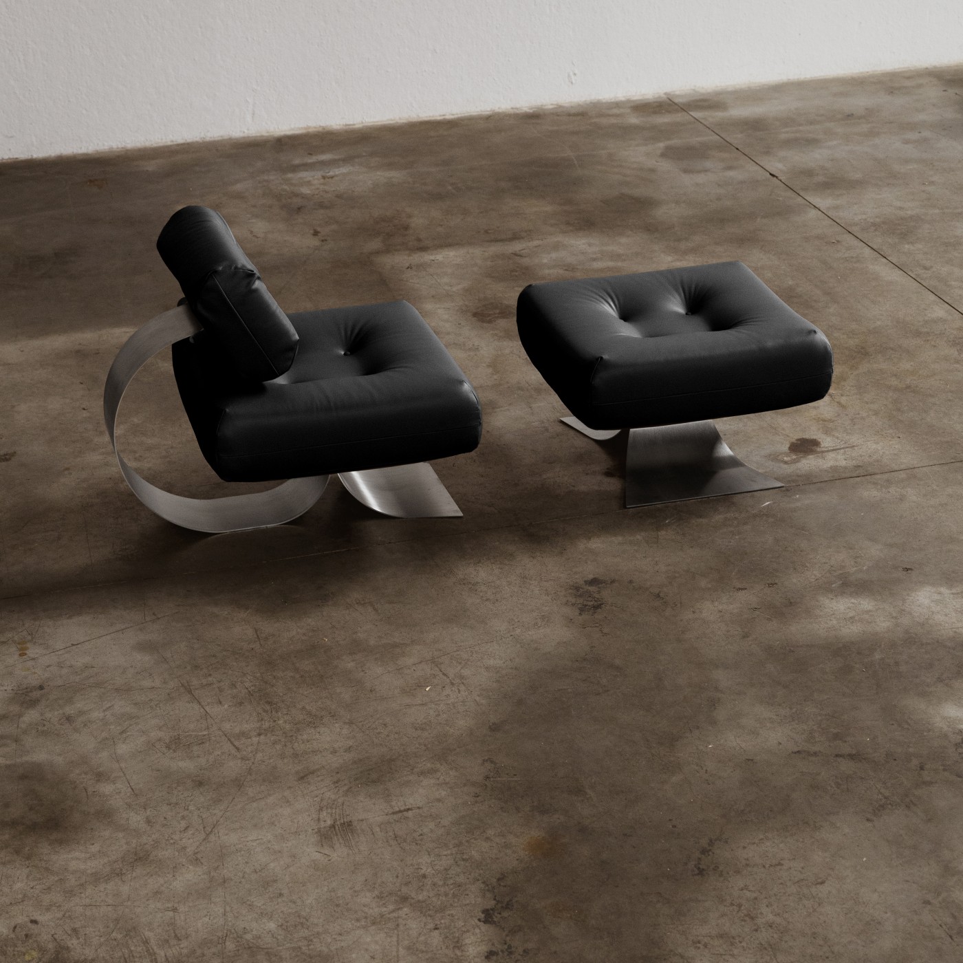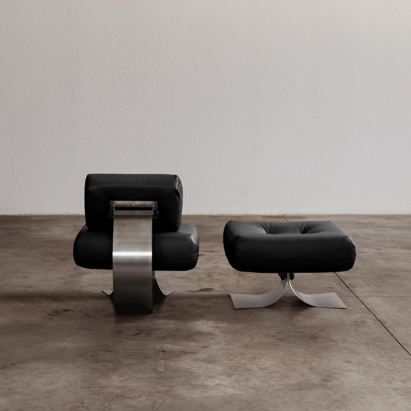 Oscar Niemeyer “Alta” lounge set for Mobilier International, black leather, France, 1971.