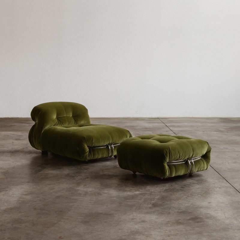Afra & Tobia Scarpa “Soriana” Lounge Set for Cassina, Green Velvet, 1969