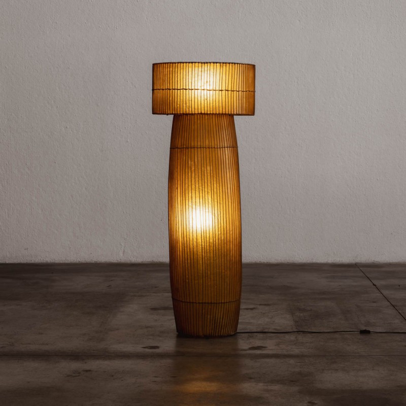 French Modern Floor Lamp in Resin and Wicker, 1972