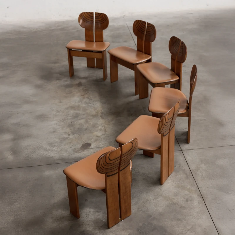 Afra & Tobia Scarpa "Africa" Dining Chairs for Maxalto, Cognac Leather, 1975, Set of 6