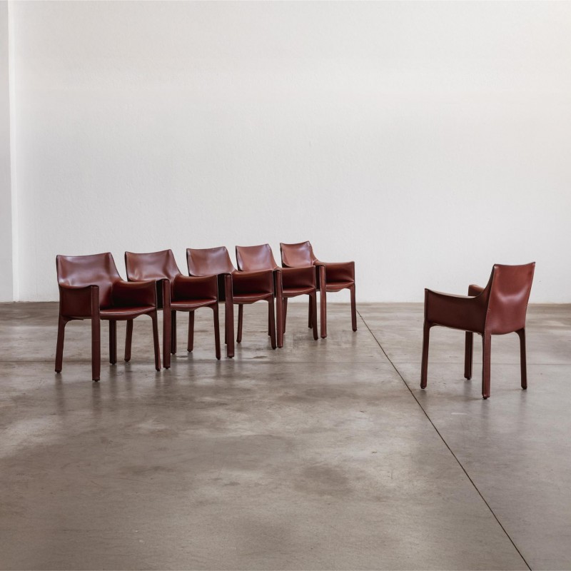 Mario Bellini "CAB 412" Dining Chairs for Cassina, Bordeaux Leather, 1978, Set of 6