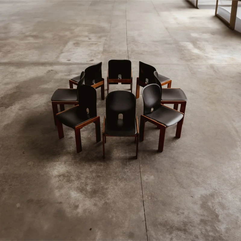 Afra & Tobia Scarpa "121" Dining Chairs for Cassina, Total black, 1965, Set of 8